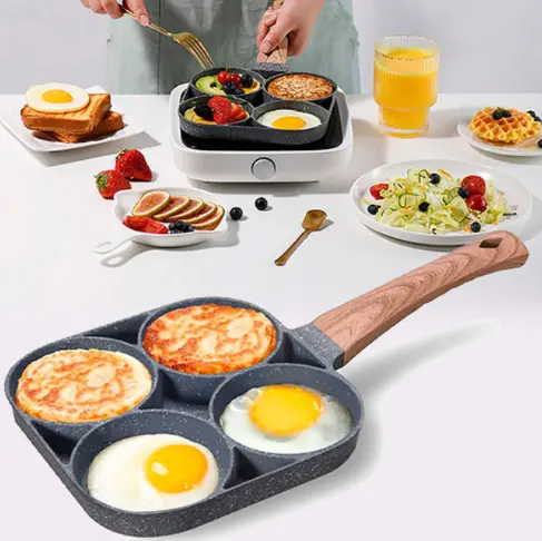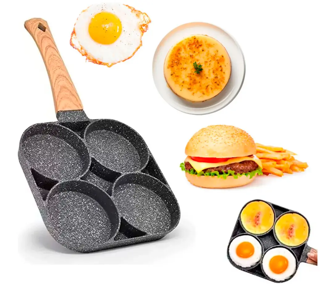 La sartén antiadherente te permite freír 4 huevos al mismo tiempo, lo que hace que cocinar sea más rápido y fácil, ahorrando tiempo y energía del desayuno.